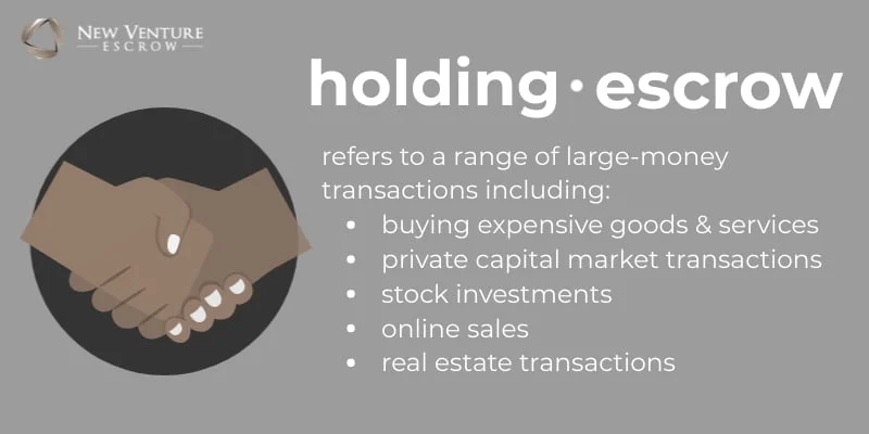 New Venture Escrow is ready to help you close on any transaction, no matter which type it may be. That’s why we’re sharing this handy guide on everything you need to know about holding money in escrow, so you can be prepared to tackle your sale or purchase with the knowledge and confidence you need to maneuver through it. Let’s dive in!